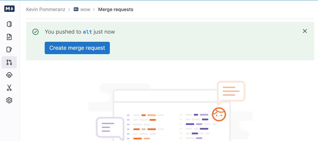 Zuerst solltet ihr auf euer Projekt gehen und auf der linken Seite das Merge requests Symbol anklicken