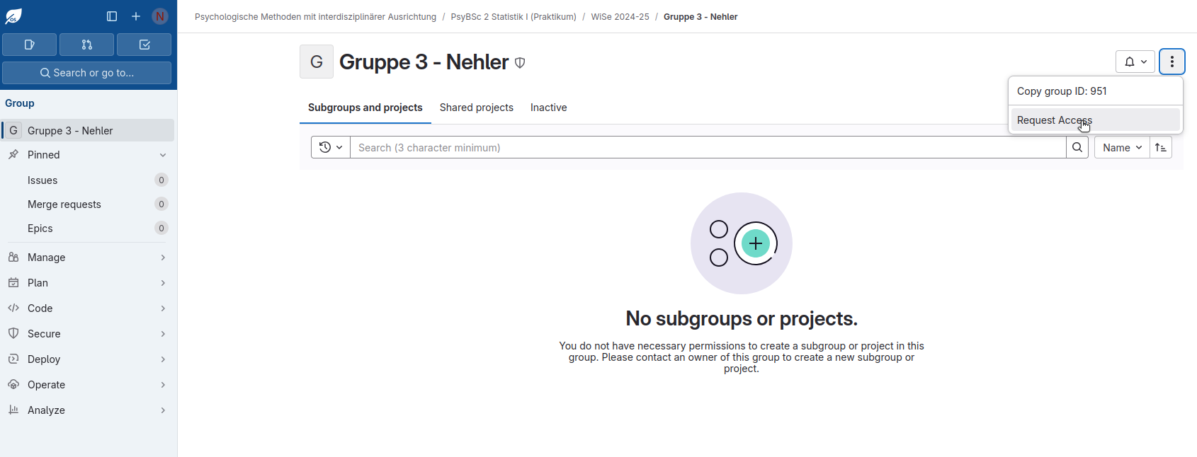 Hat dies funktioniert? Dann Gratulation! Sie haben so eben einen wichtigen Schritt gemeistert und Zugriff zu Ihrer Praktikumsgruppe beantragt. Sobald Ihr Dozent/Ihre Dozentin Ihre Anfrage bestätigt hat, können Sie und Ihre Gruppe loslegen.