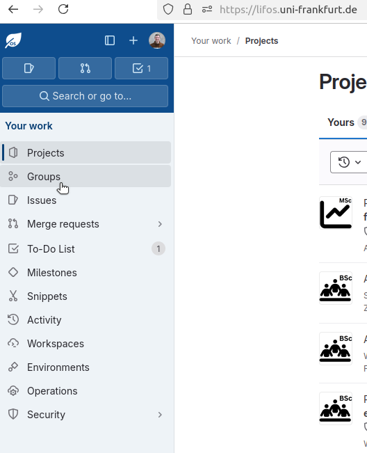 LIFOS steht für Lokale Infrastruktur für Open Science und ist unsere universitätsinterne Übungsplattform für Studierende der Psychologie-Studiengänge der Goethe-Universität Frankfurt. Die Plattform basiert auf GitLab und ist der Struktur des Open Science Frameworks nachempfunden. Die Idee ist, Open Science Praktiken im Rahmen des Studiums in einem geschützten Rahmen üben und durchführen zu können. Um mit Ihrem Projekt auf LIFOS loszulegen, müssen Sie zuerst folgende Schritte absolvieren: