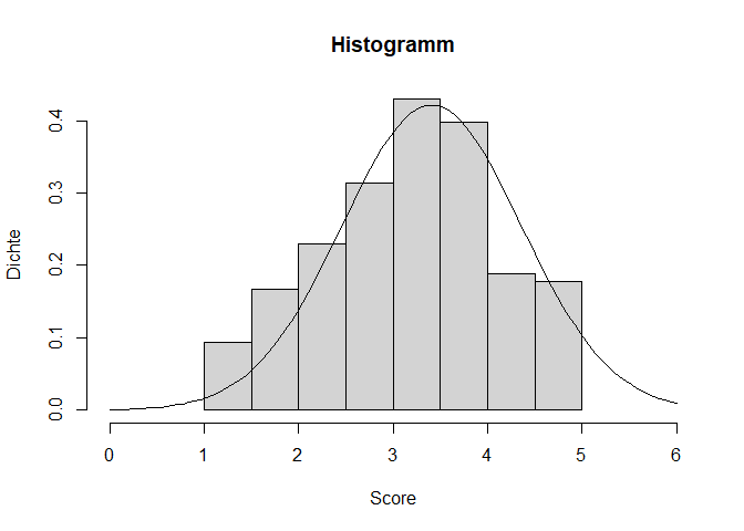 xlab = "Score", ylab= "Dichte", freq = FALSE)