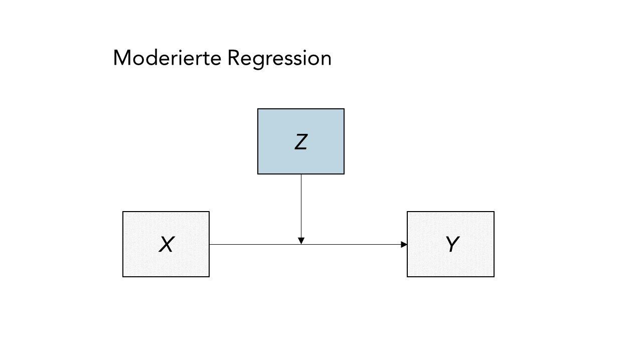 Vorsicht: Nicht zu verwechseln ist die moderierte Regression mit der Mediationsanalyse, die Sie als eine Variante der Pfadanalyse erst in der entsprechenden Lektion im Master kennenlernen werden.