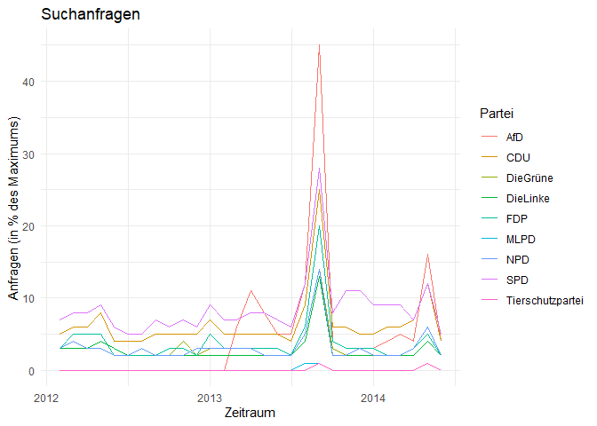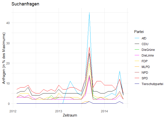 Um bestimmte Abschnitte näher unter die Lupe zu nehmen, können wir jetzt Anhand der Zeitvariable spezifische Auswahlen treffen. Wenn wir uns z.B. den Zeitraum um die Bundestagswahl von 2013 näher angucken möchten, können wir uns auf die Jahre zwischen 2012 und 2014 konzentrieren: